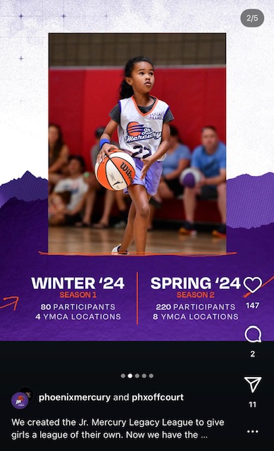 Another graphic they used was for highlighting their Junior Mercury program, where they team up with the WNBA franchise to give young girls the opportunity to play in youth leagues at their local YMCA’s.
